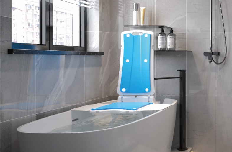 Um elevador de banho é um dispositivo mecânico projetado para abaixar e elevar uma pessoa para dentro e fora da banheira. Normalmente alimentado por uma bateria recarregável, possui uma base estável, encosto reclinado e controle à prova d'água. O assento do elevador de banho desce suavemente para o fundo da banheira, depois levanta o usuário de volta após o banho. Alguns modelos são projetados como uma cadeira de elevação de banho completa, oferecendo suporte e conforto aprimorados, como elevador de banho JC35m3-1 , Bath Lift JC35M3.