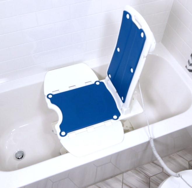 O assento se move para cima e para baixo por meio de um motor. Normalmente vem com um controle remoto, pode ser usado em uma banheira padrão e é fácil de instalar e manobrar.