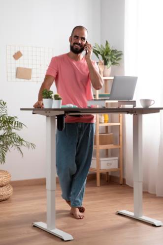 A maioria dos quadros de mesa em pé suporta ajuste de altura de sentar para permanecer em pé, normalmente entre 70 a 120 cm, permitindo que os usuários o personalizem de acordo com sua altura e preferências por conforto ergonômico.
